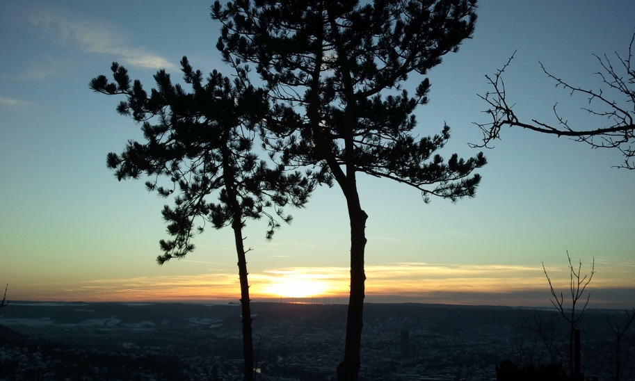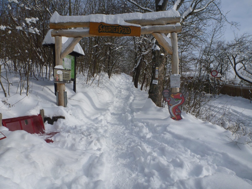 Bild Nr. 1 - Saurierpfad im Schnee- Bild Nr. 2 - Sonnenuntergang über Jena -