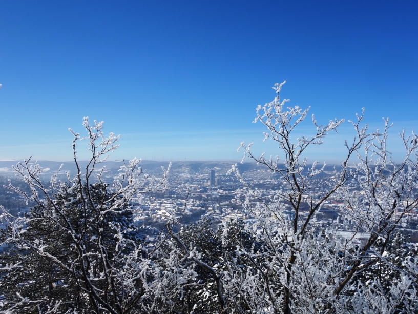 Von hier aus kann man die schöne Aussicht auf Jena-Ost und den Fuchsturm genießen.