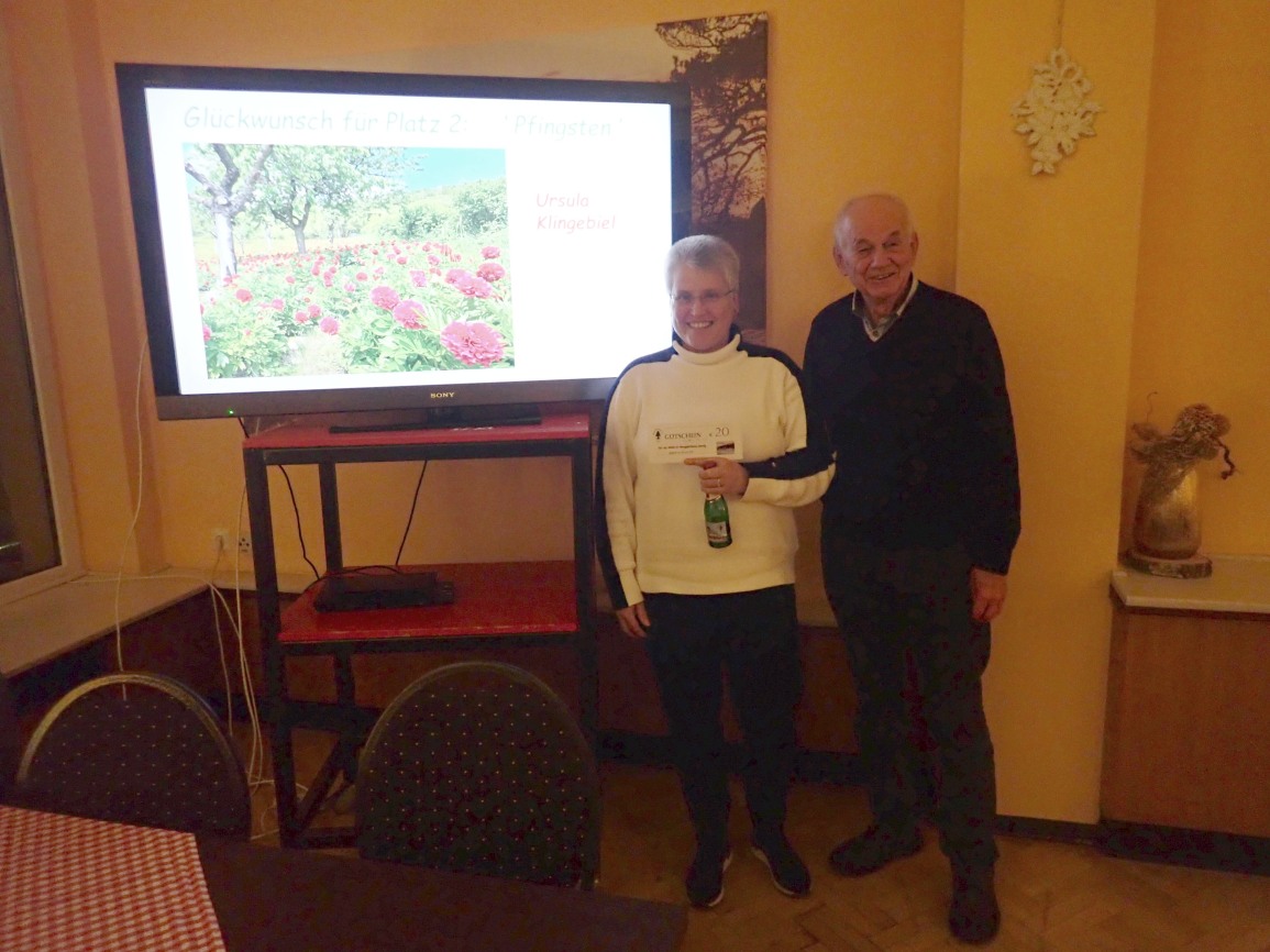Leider war nur die Gewinnerin des 2. Platzes anwesend, Hajo gratulierte ihr und übergab den Preis.