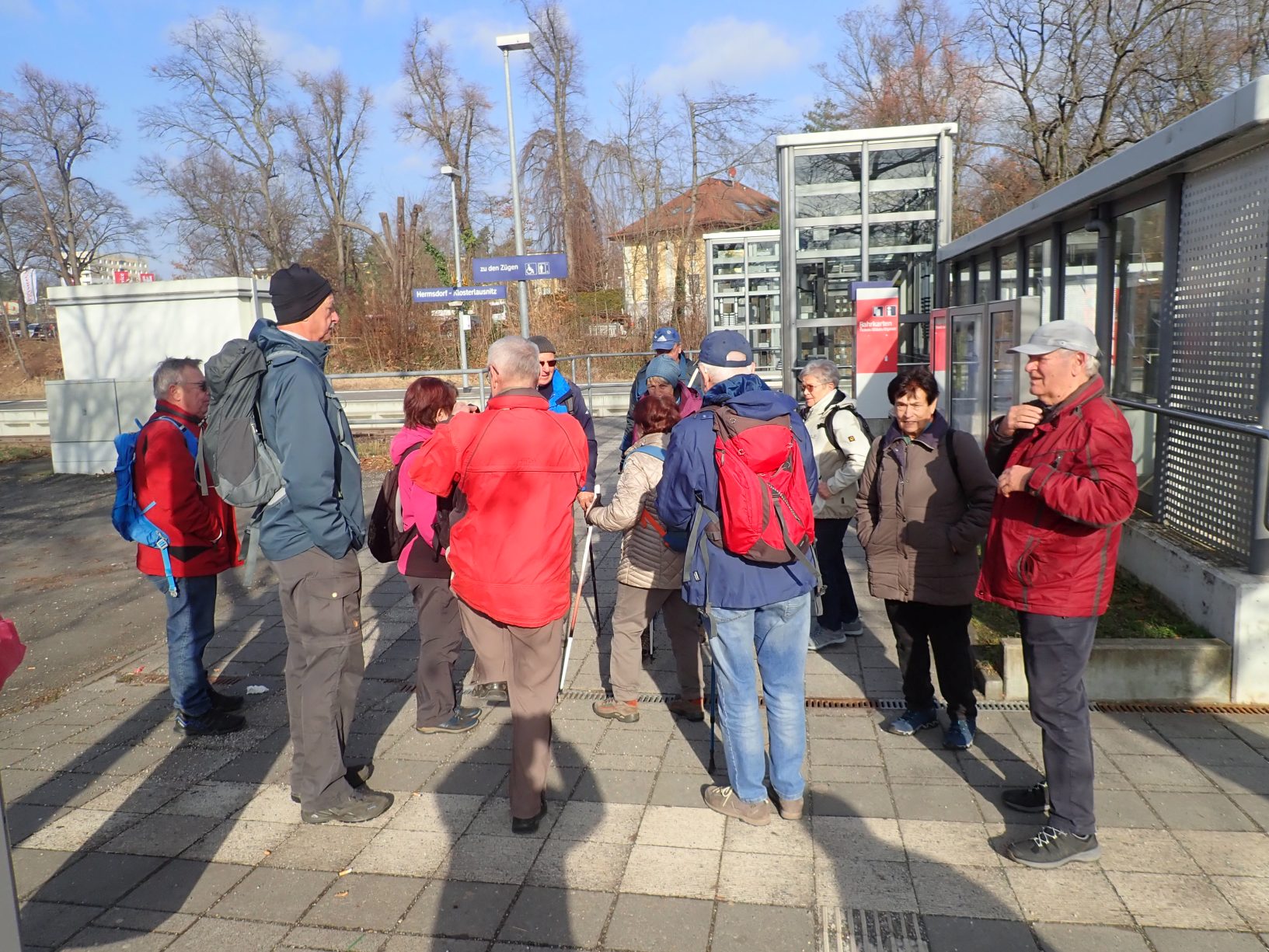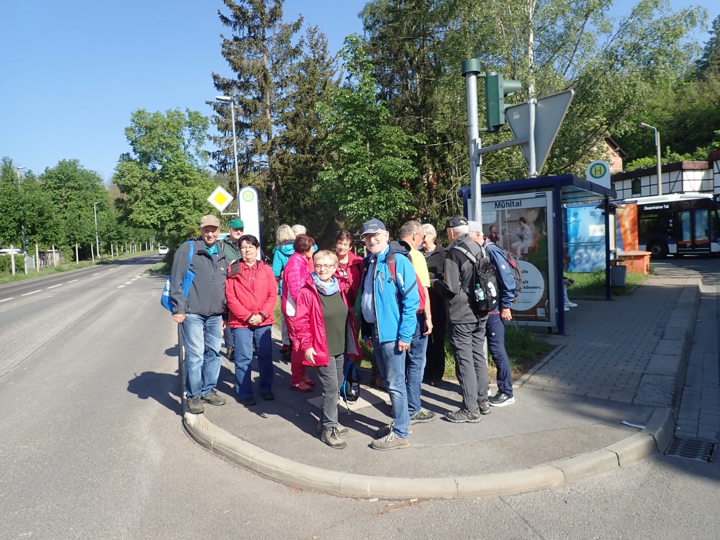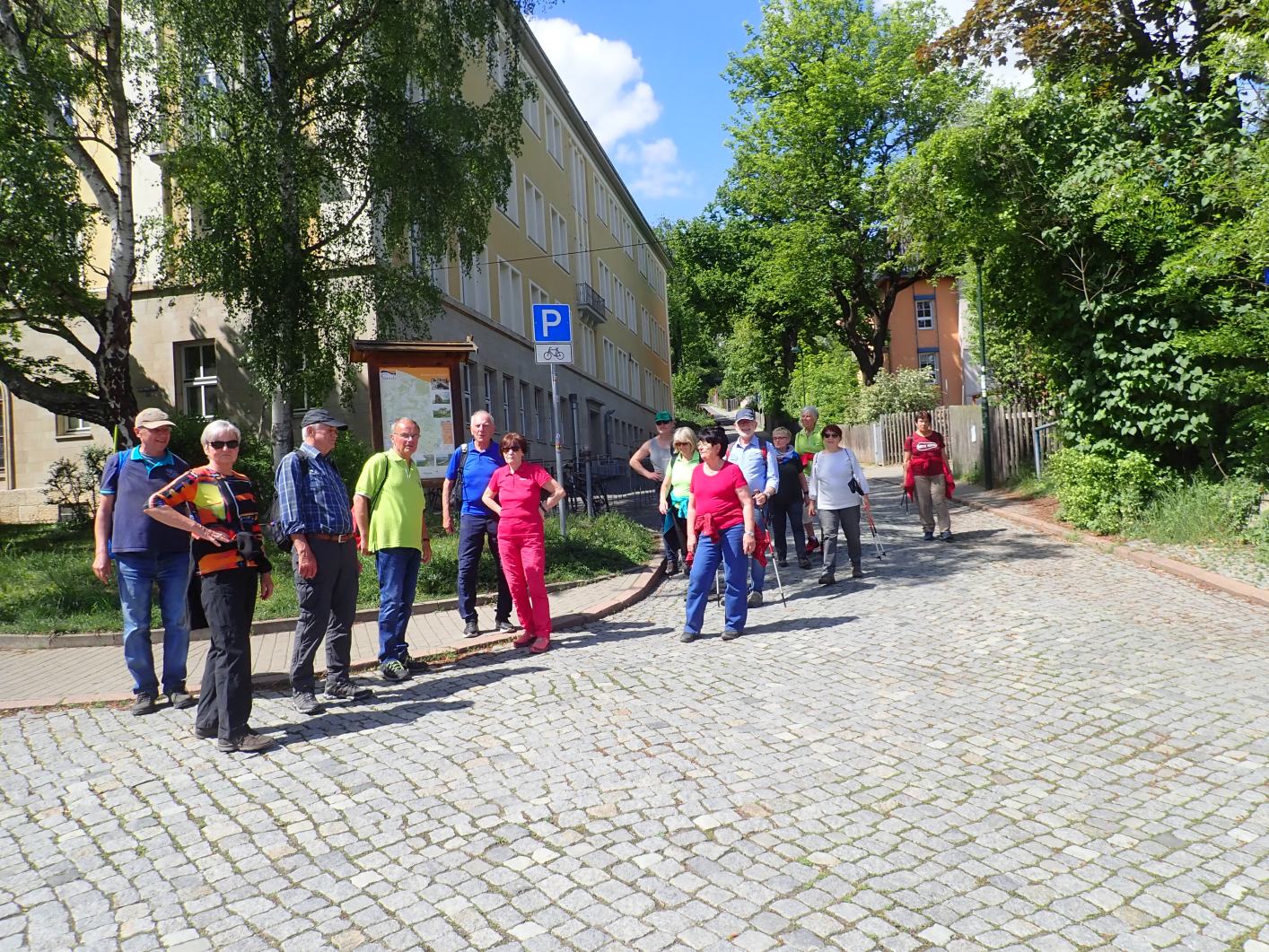 16 Wanderfreunde trafen sich 9.30 Uhr an der Straßenbahn-Endhaltestelle Jena-Zwätzen. Interessante Hinweise auf die Geschichte fanden wir in der Max-Gräfe Gasse,