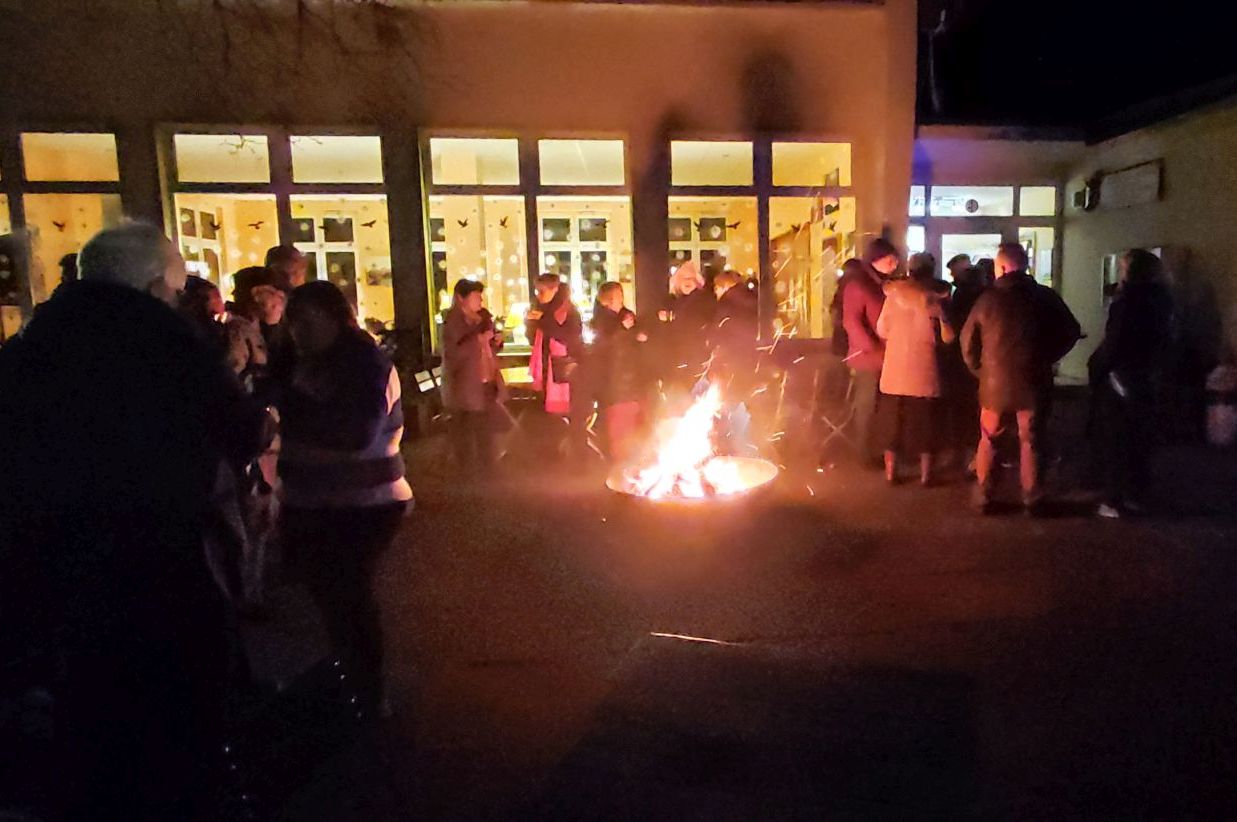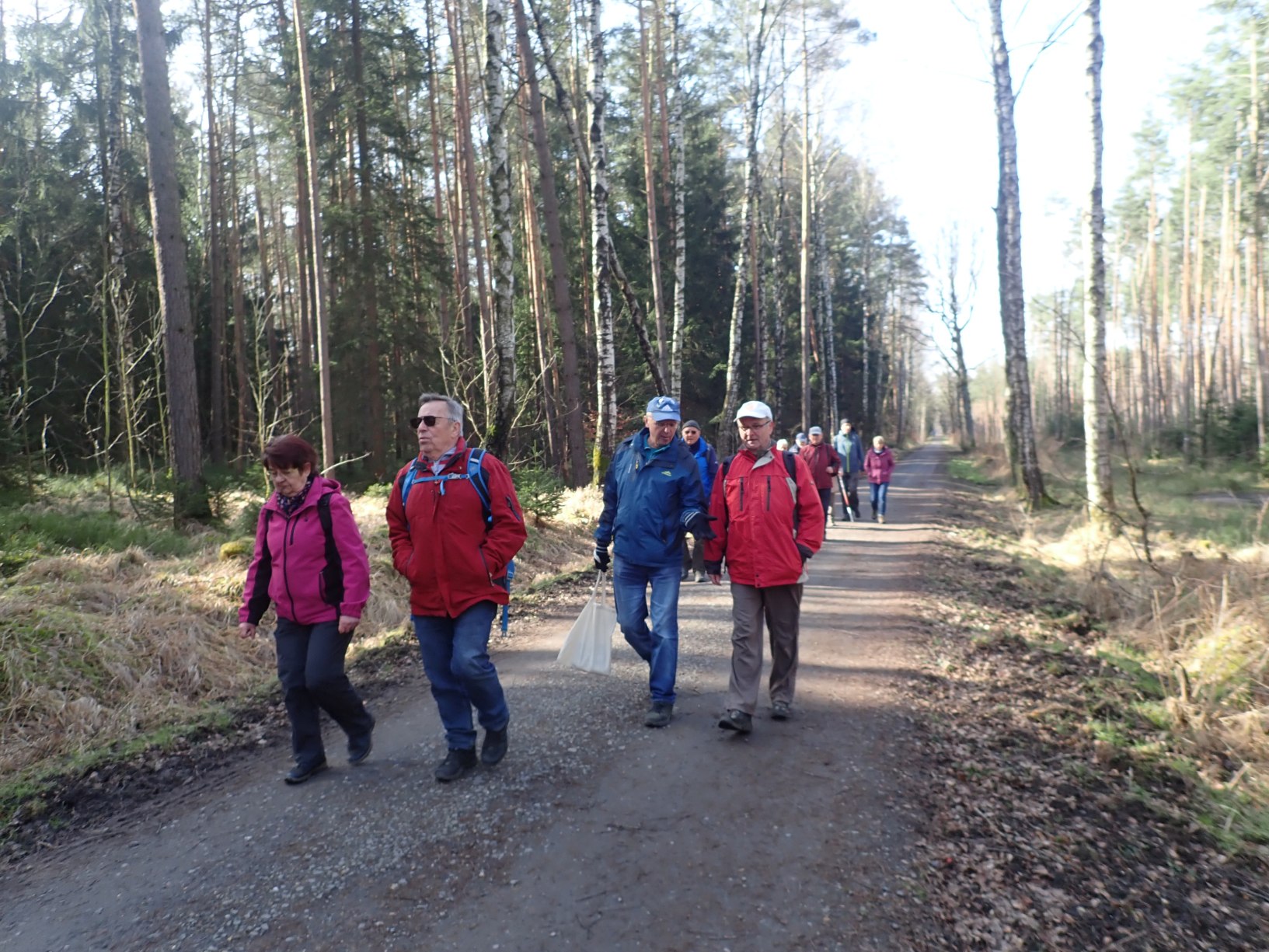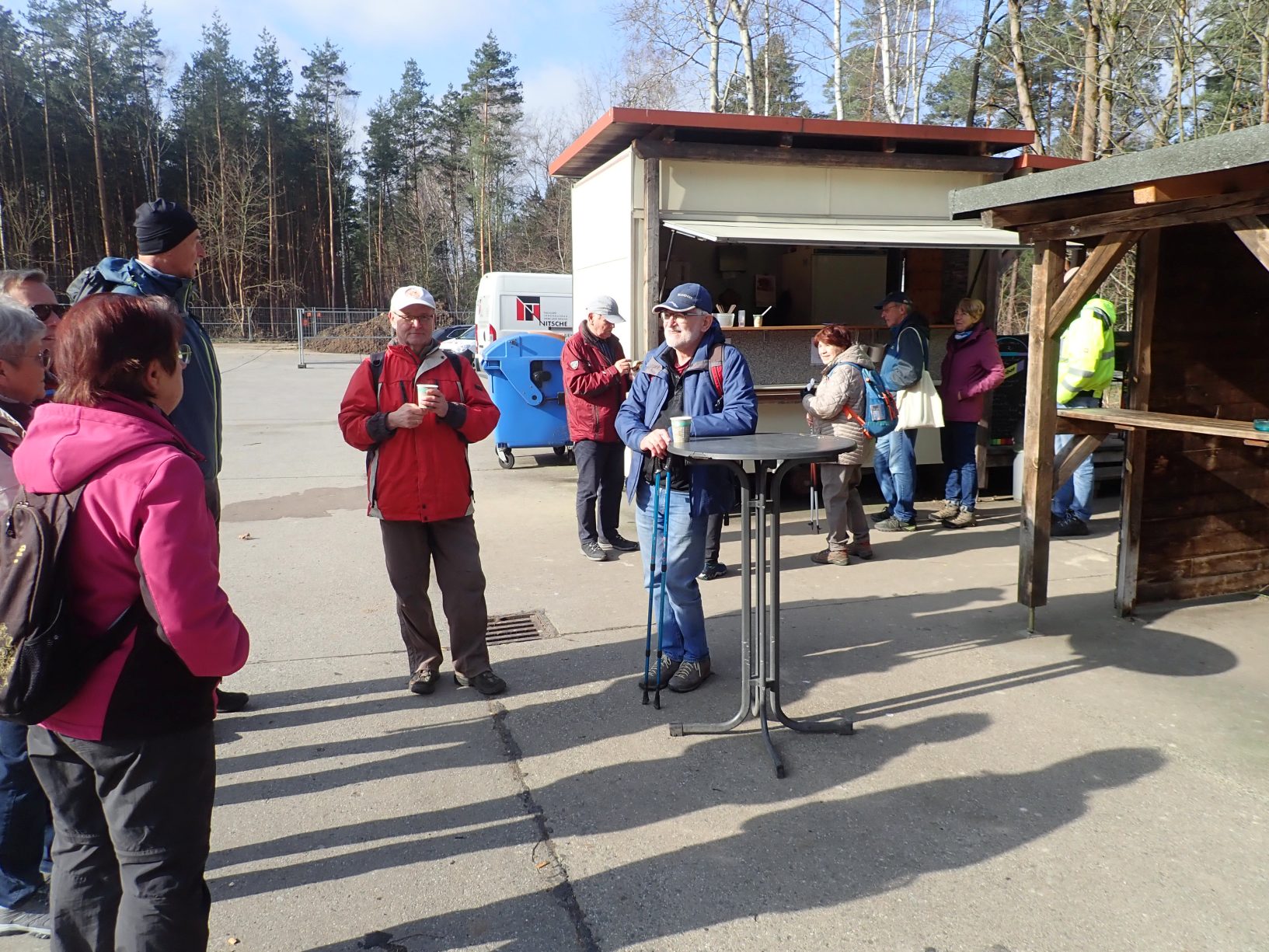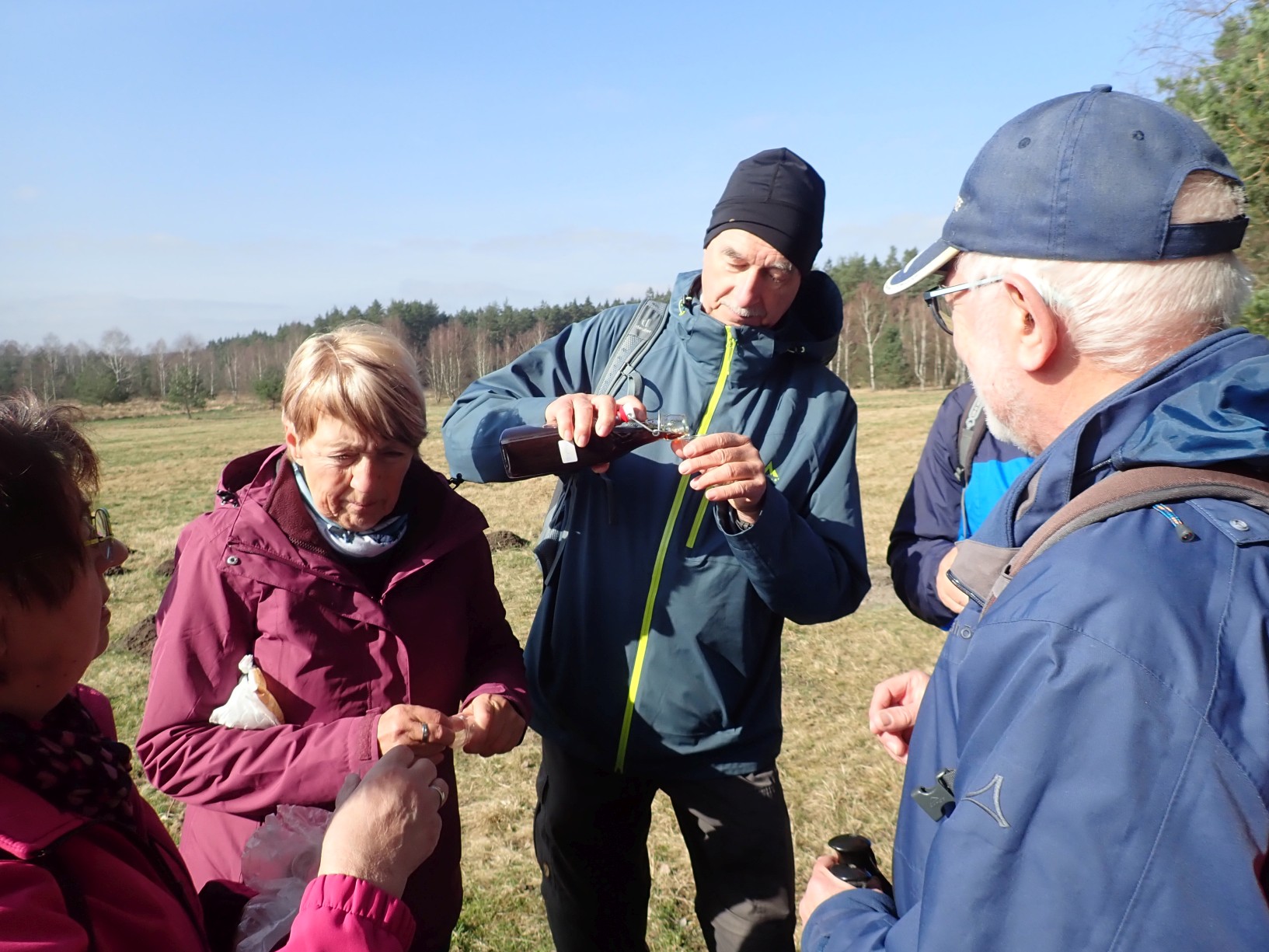 Vom Treffpunkt Bahnof wanderten wir zum Naturschutzgebiet "Rote Pfütze", kamen aber nicht am Falk's Kiosk am Parkplatz vorbei. Das Angebot von Glühwein bis Bratwurst war für alle als kurze Pause willkommen.