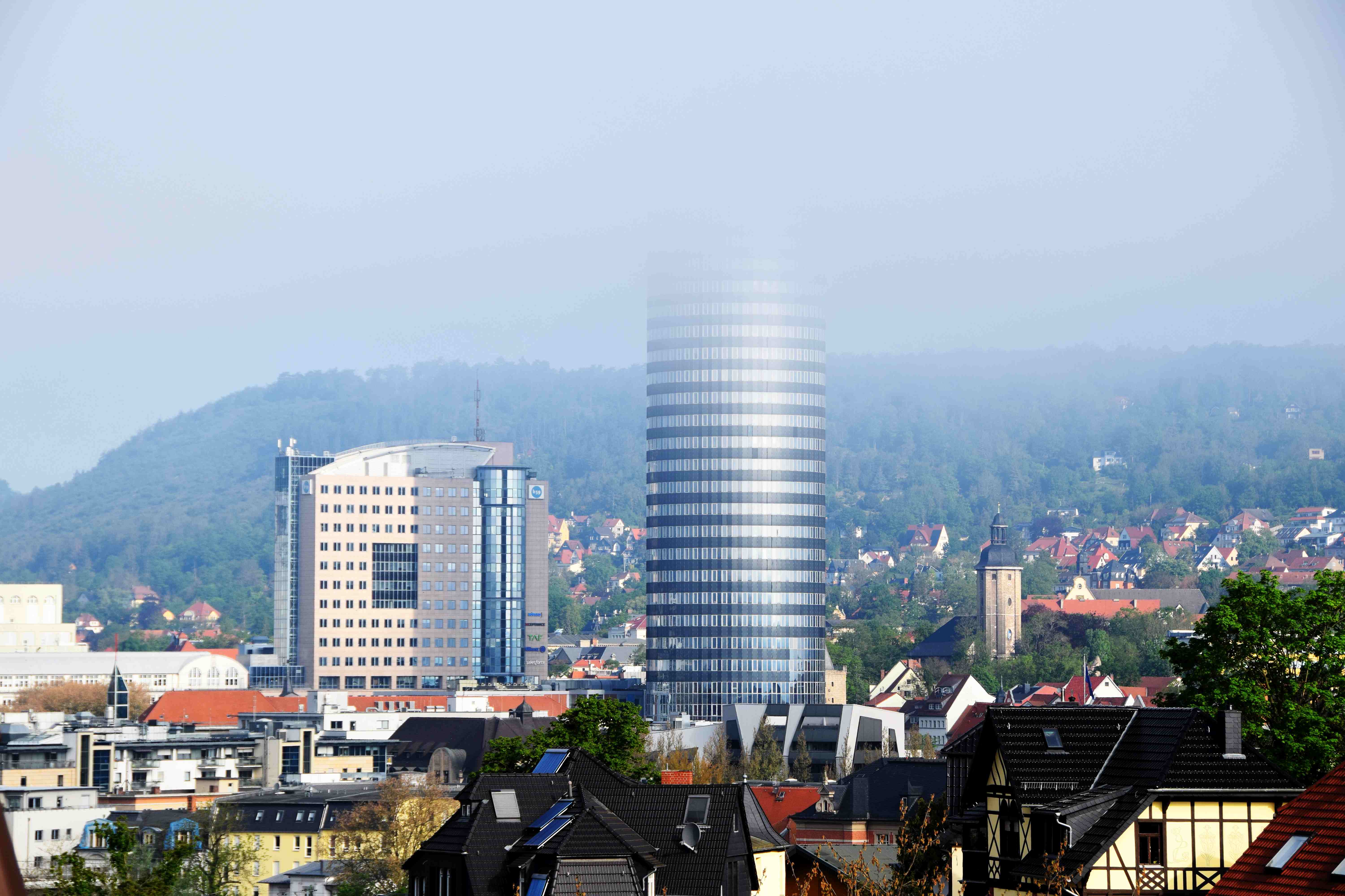 und das Panorama der 'Lichtstadt Jena' bewundert werden konnte.