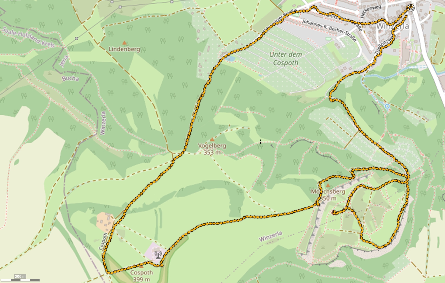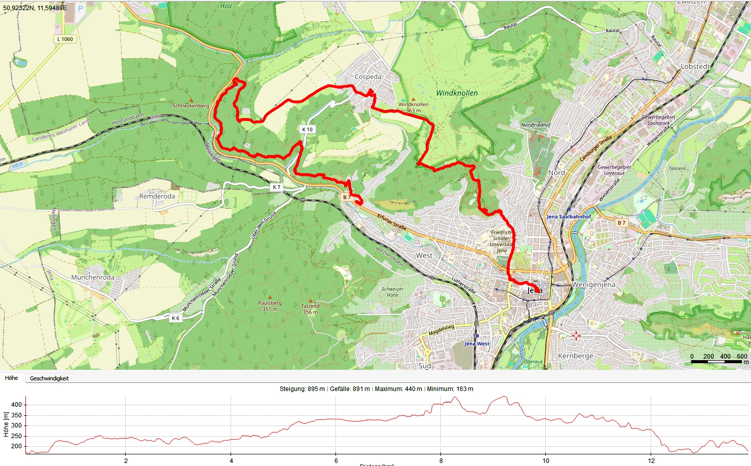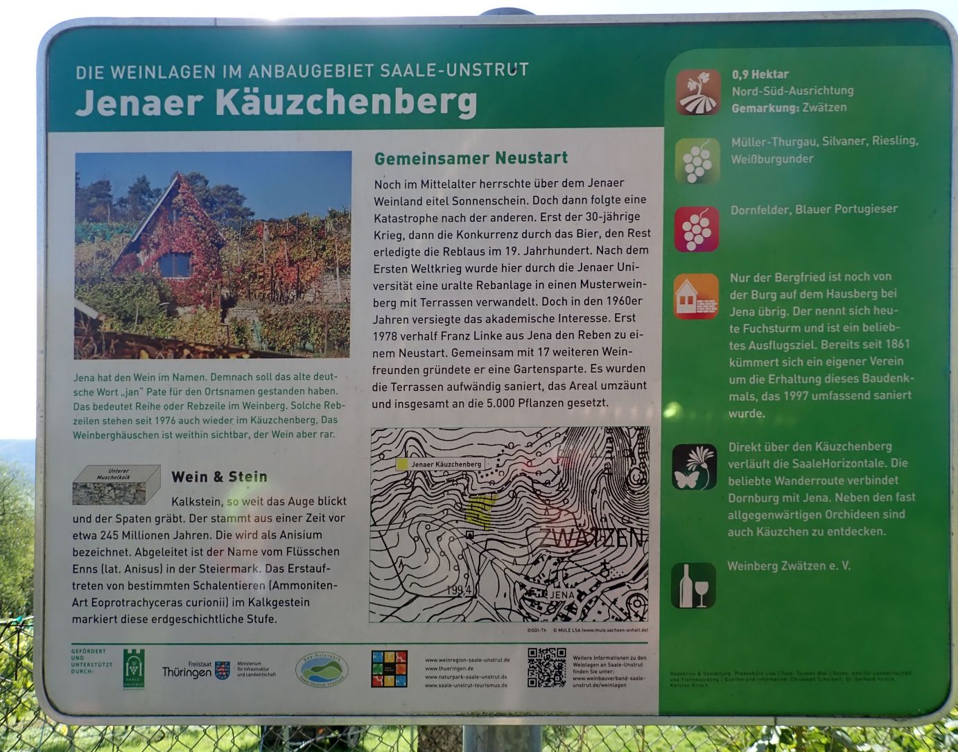 Von da über den Schafberg(steiler Aufstieg) auf die Saale-Horizontale, am Weinberg Käuzchenberg (Erklärung:Klick)