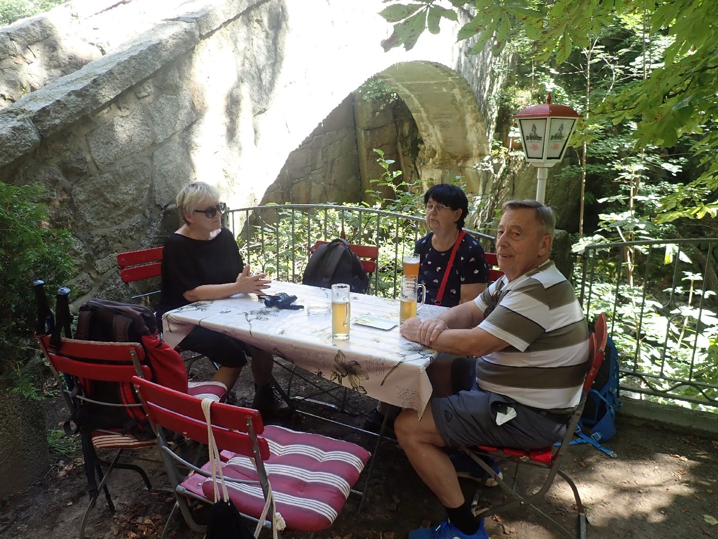 Am Ausgang der Teufelsmauer lockte die Rast im Marienhof als willkommene Erholung für alle.