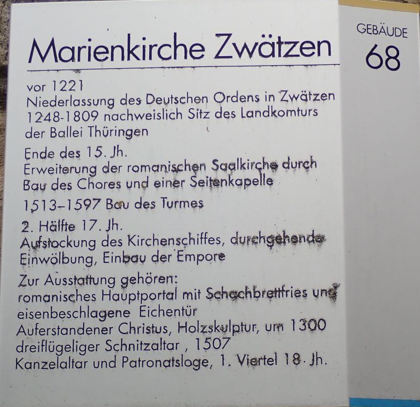 - eine Tafel zur Erinnerung an die Komture des deutschen Ordens in Zwätzen