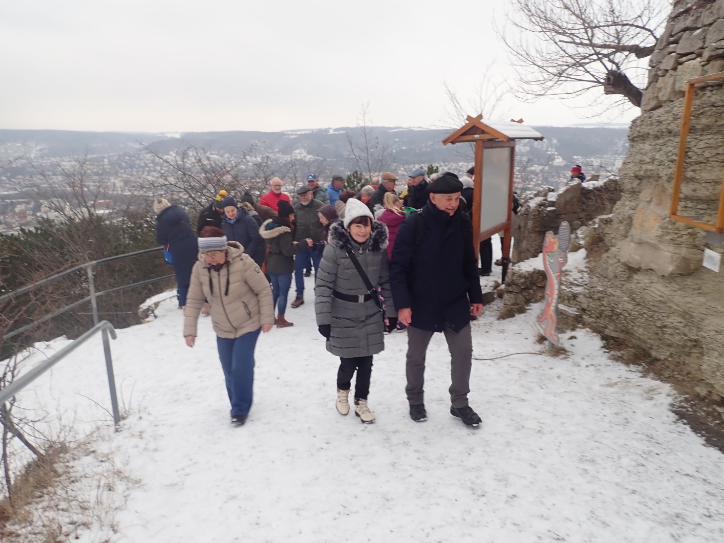 Am Wanderparkplatz trafen sich ca. 38 Jenziger um gemeinsam auf verschneitem Wege den Berg zu besteigen.