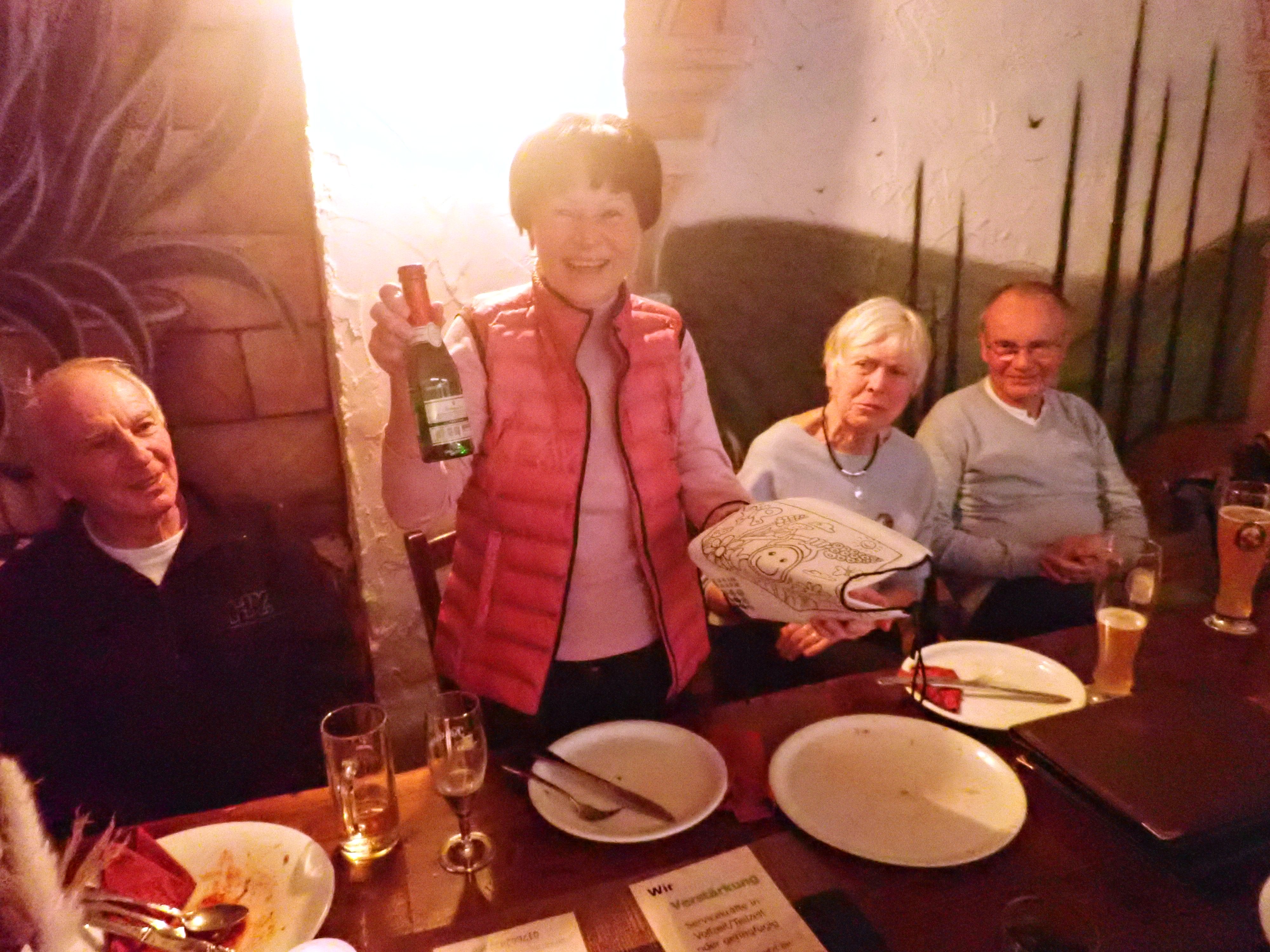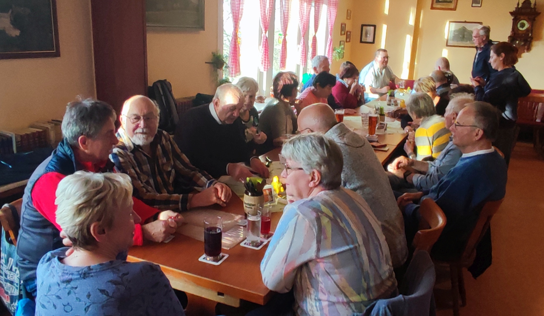 Zur gemütlichen Runde wurden Bilder des letzten Jahres gezeigt. Uschi hatte ein Video zur Wanderfahrt in die Böhmische Schweiz 2023 erstellt, das insbesondere die Teilnehmer mit Begeisterung verfolgten. In gemütlicher Runde gab es rege Unterhaltungen.