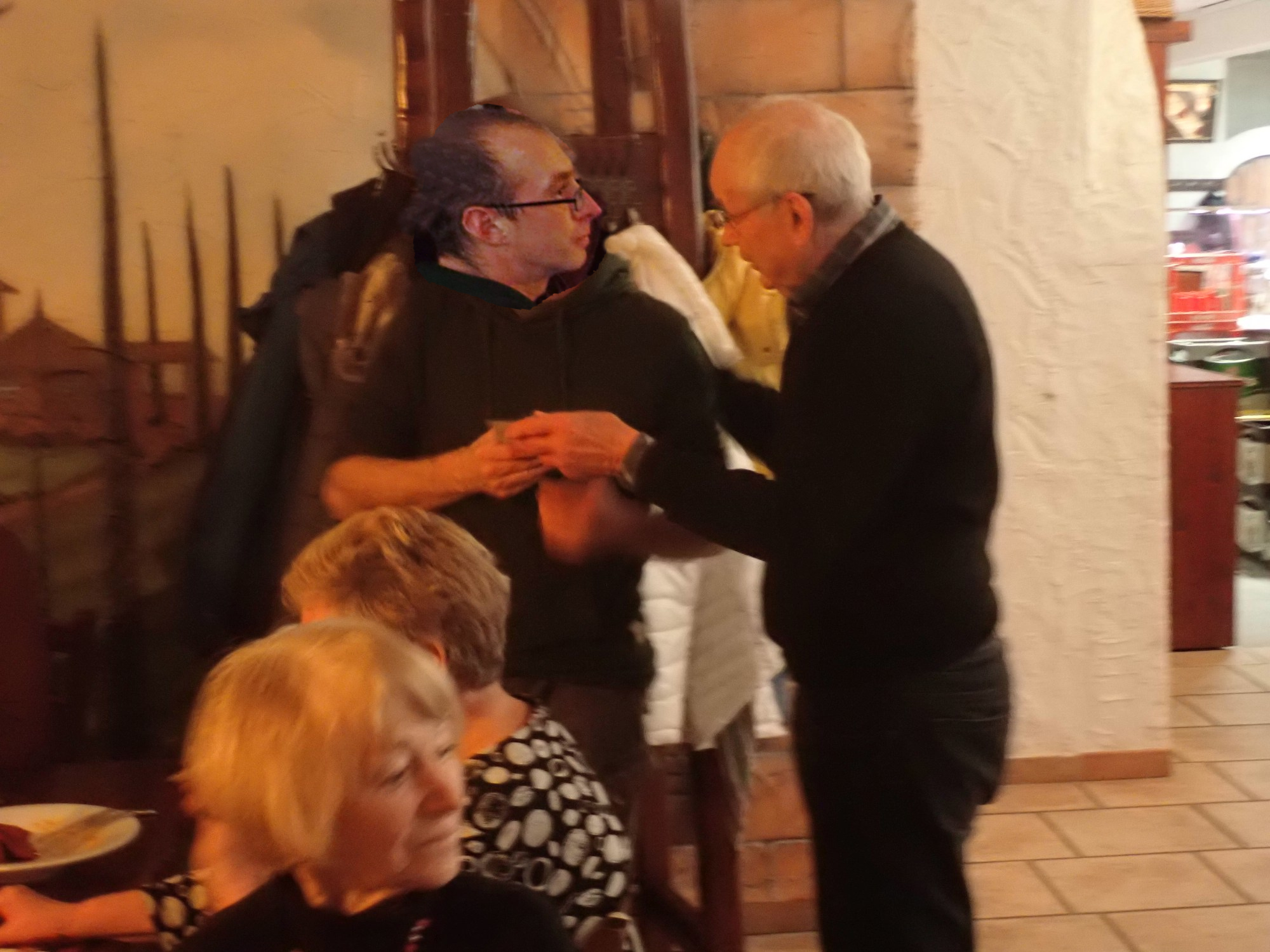 Unser Vorsitzender verteilte eine 'kleine Stärkung' (Kräuterlikör) für die Herren, für die Damen hatte Brigitte einen außergewönlichen Frucht-Likör mitgebracht um auf das Neue (Jenzig-) Jahr anzustoßen.
