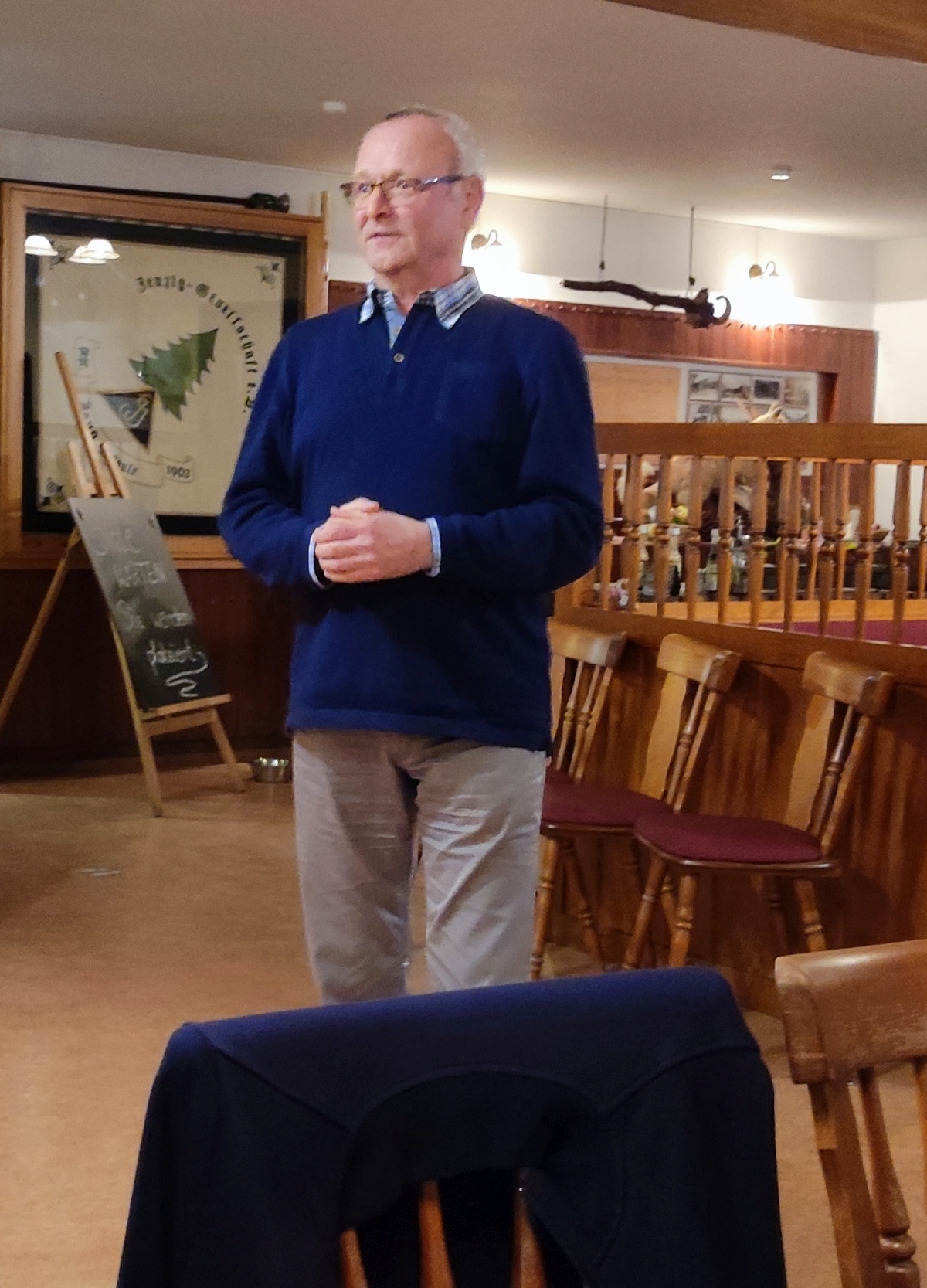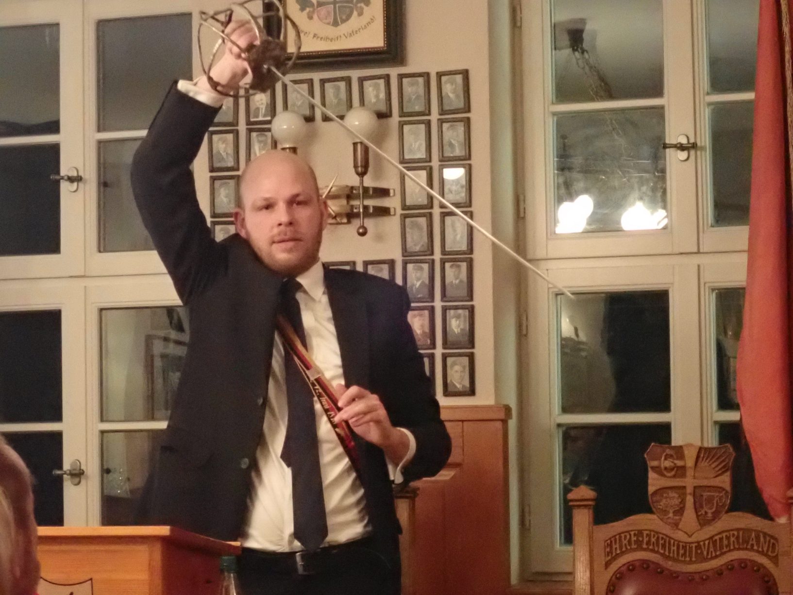 Heiko Ziemer, Mitglied der Burschenschaft Arminia auf dem Burgkeller, hat mit umfangreichem Wissen Geschichte und Tätigkeiten der Burschenschaft im Saal der Grünen Tanne vorgetragen.