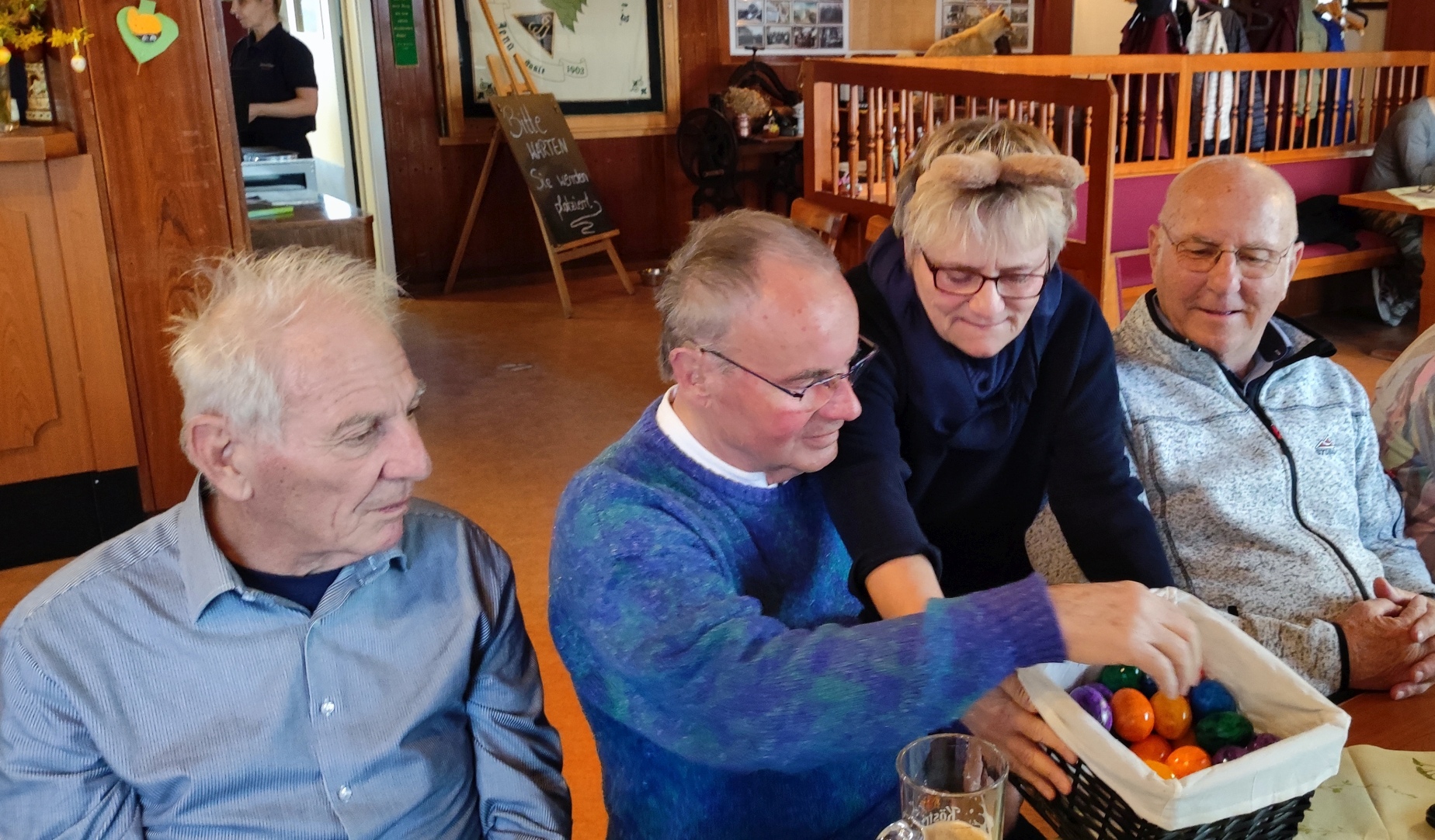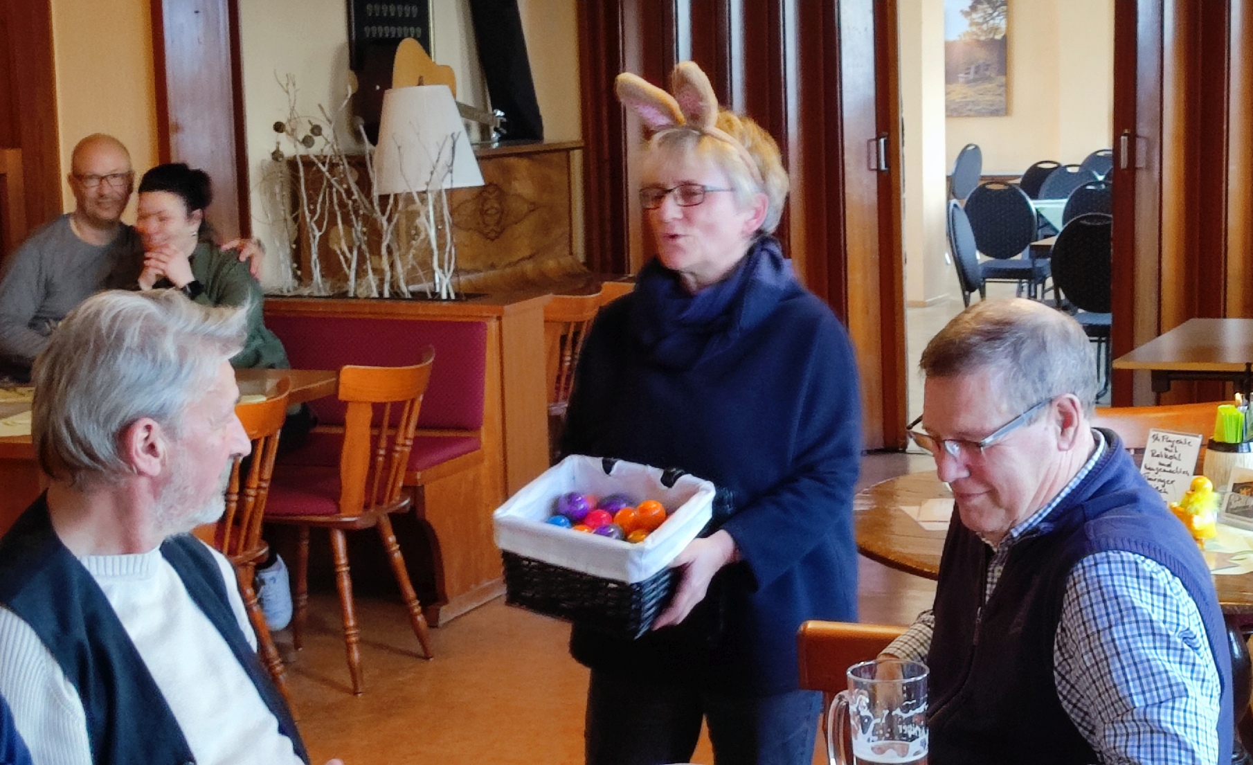 Tradition geworden ist das gemütliche Beisammensein am Gründonnerstag. Zu Beginn mußten erst einmal alle Tische im Gasthaus verschoben werden, um mit einer langen Tafel