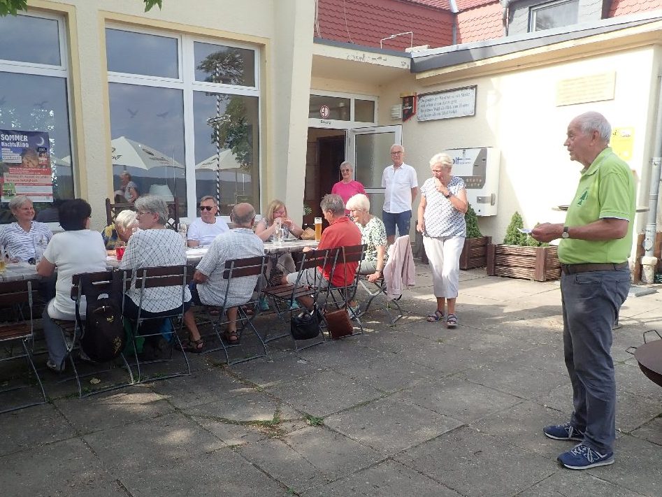 Anschließend fuhren wir gemeinsam zu unserer Unterkunft in Warnstedt wo beim gemütlichen Beisammensein auf der Terasse die offizielle Eröffnung der Wanderfahrt durch unseren Vorsitzenden erfolgte.