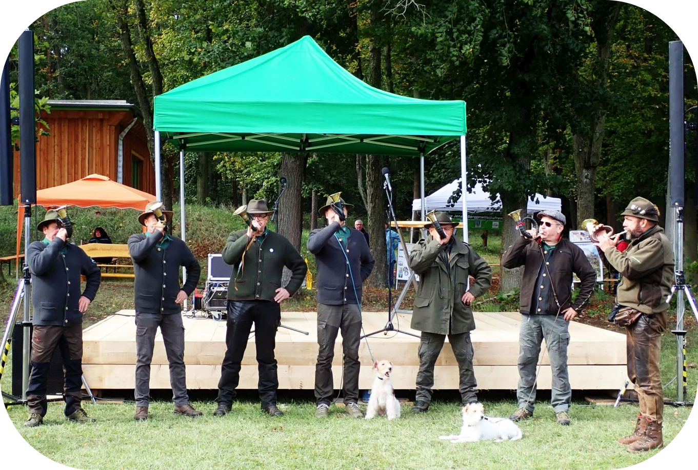 Zum Sammeln bliesen die Hornisten der Jägerschaft Gera. (Klick auf das Bild, Ton einschalten)